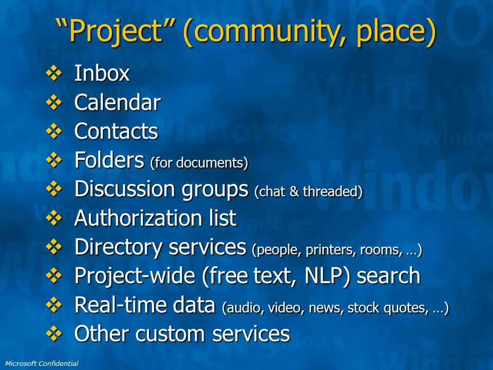 Microsoft Teams and Slack are both on the path toward our 1998 vision of The Windows Service, but both have complications and limitations. Our key insight was that the project should be the organizing principle, not teams.