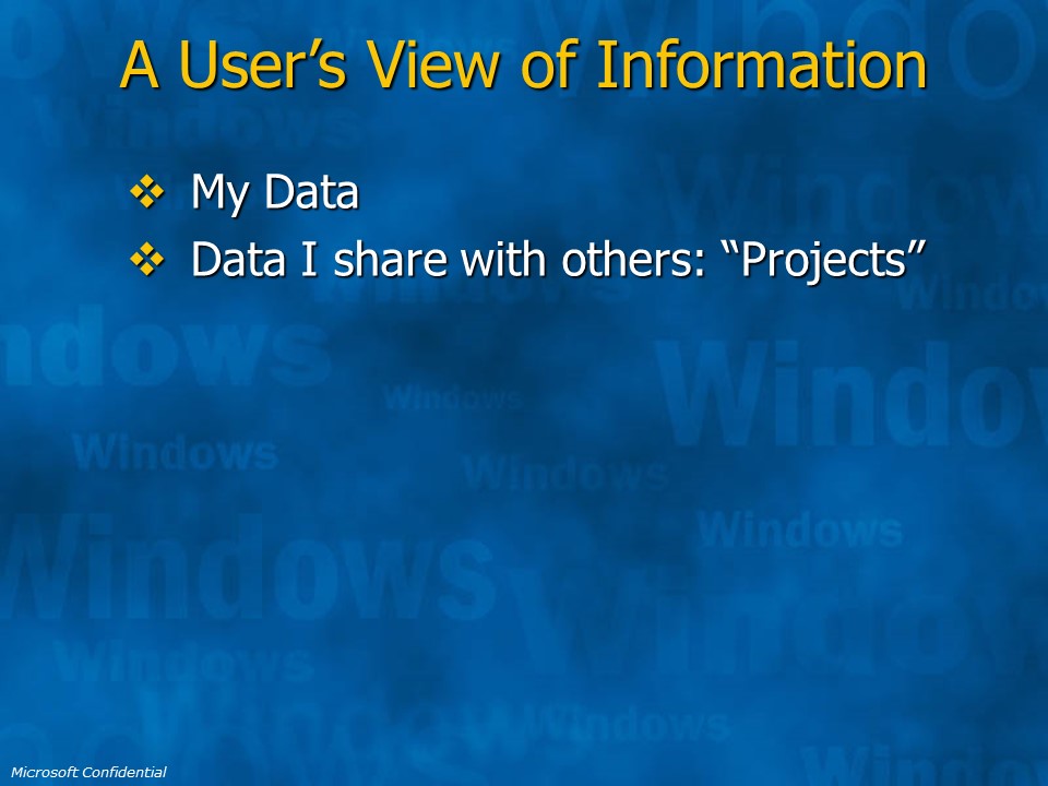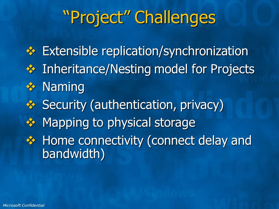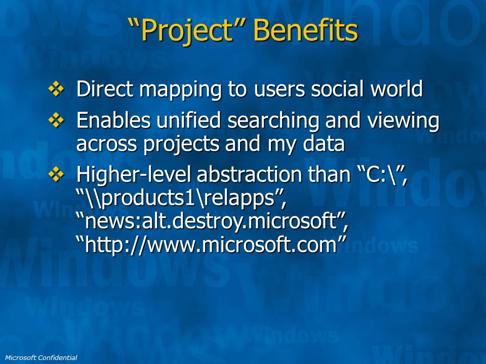 Ok gotcha. I guess it looks simple to the end user but the programming takes a lot longer. Did this have anything to do with the WinFS in longhorn or no connection?