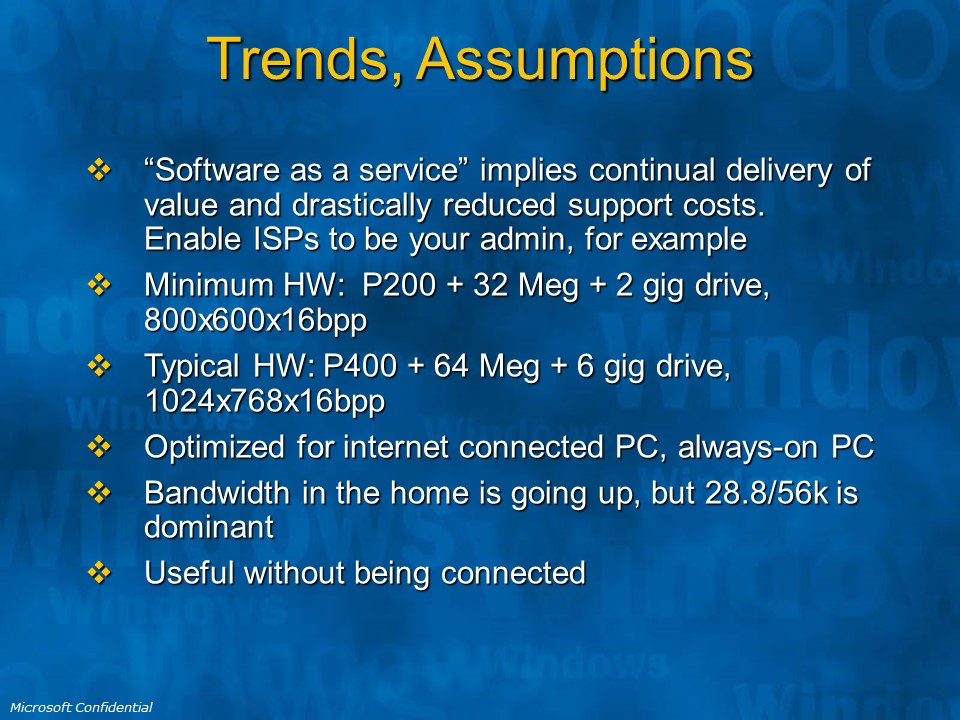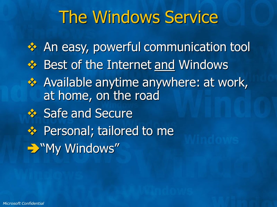 On 8/3/1998, there was an internal Strategy Conference, and I put together the presentation below, describing our vision for a human-centered computing experience that rose above and integrated Windows and the Internet.